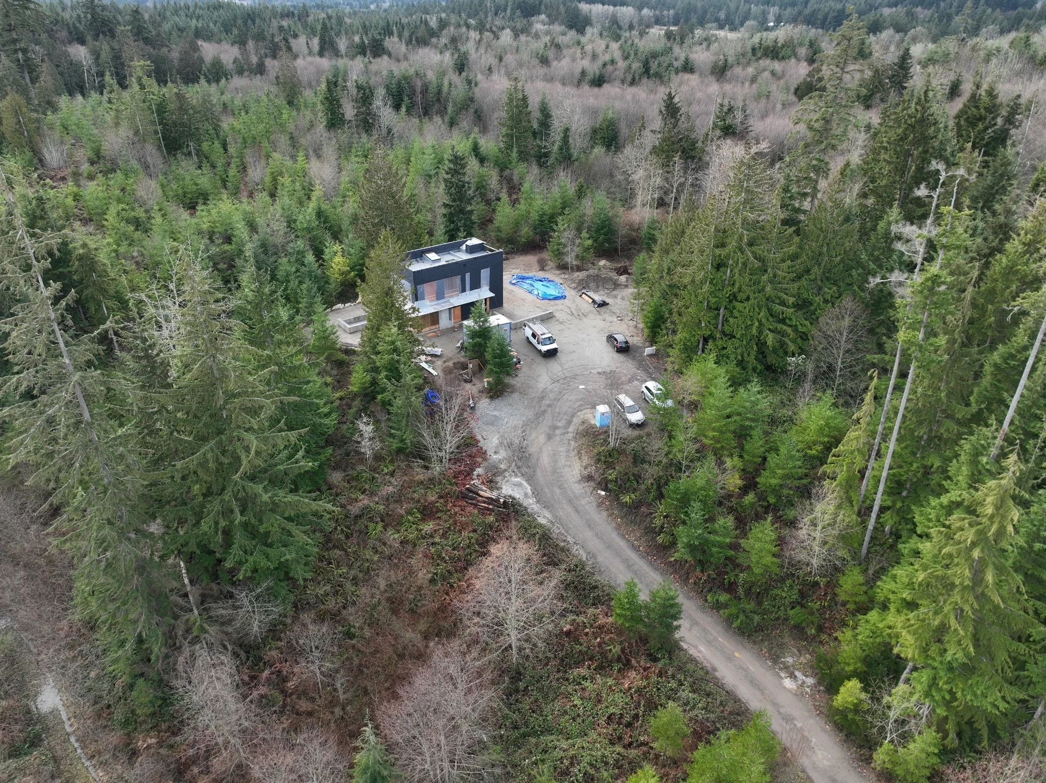 This was a collaboration with Drew Shawver Architecture + Studio DIAA, who designed the home. A property that had been clearcut maybe 20-30 years ago. It’s a young forest, with a new clearing for the house construction.