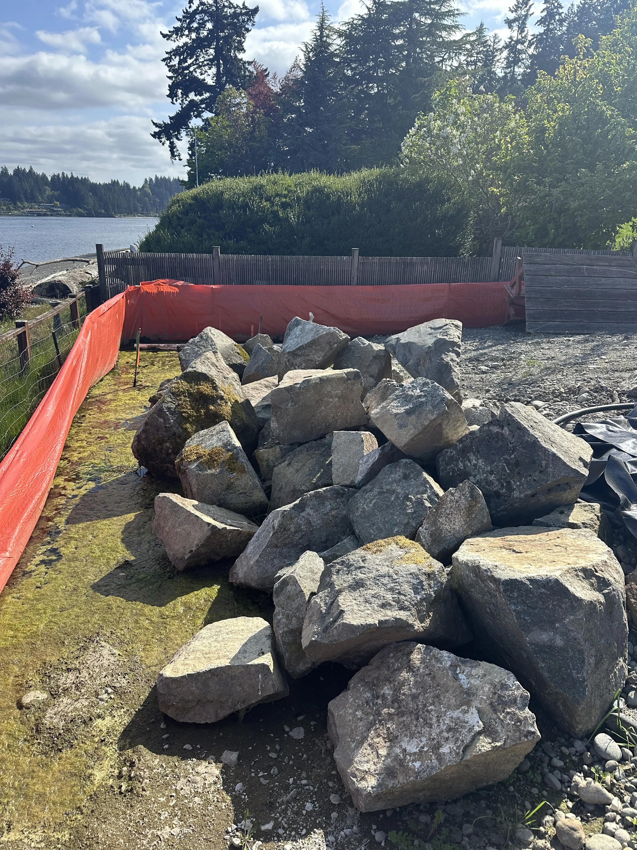 This project gave us the space to create ecotones where the forest gives way to the Puget Sound, and vice versa. We also had opportunities for some really refined moments (photos coming soon-ish), where we used limestone from a local quarry to help sculpt some subtle topography into the courtyard.