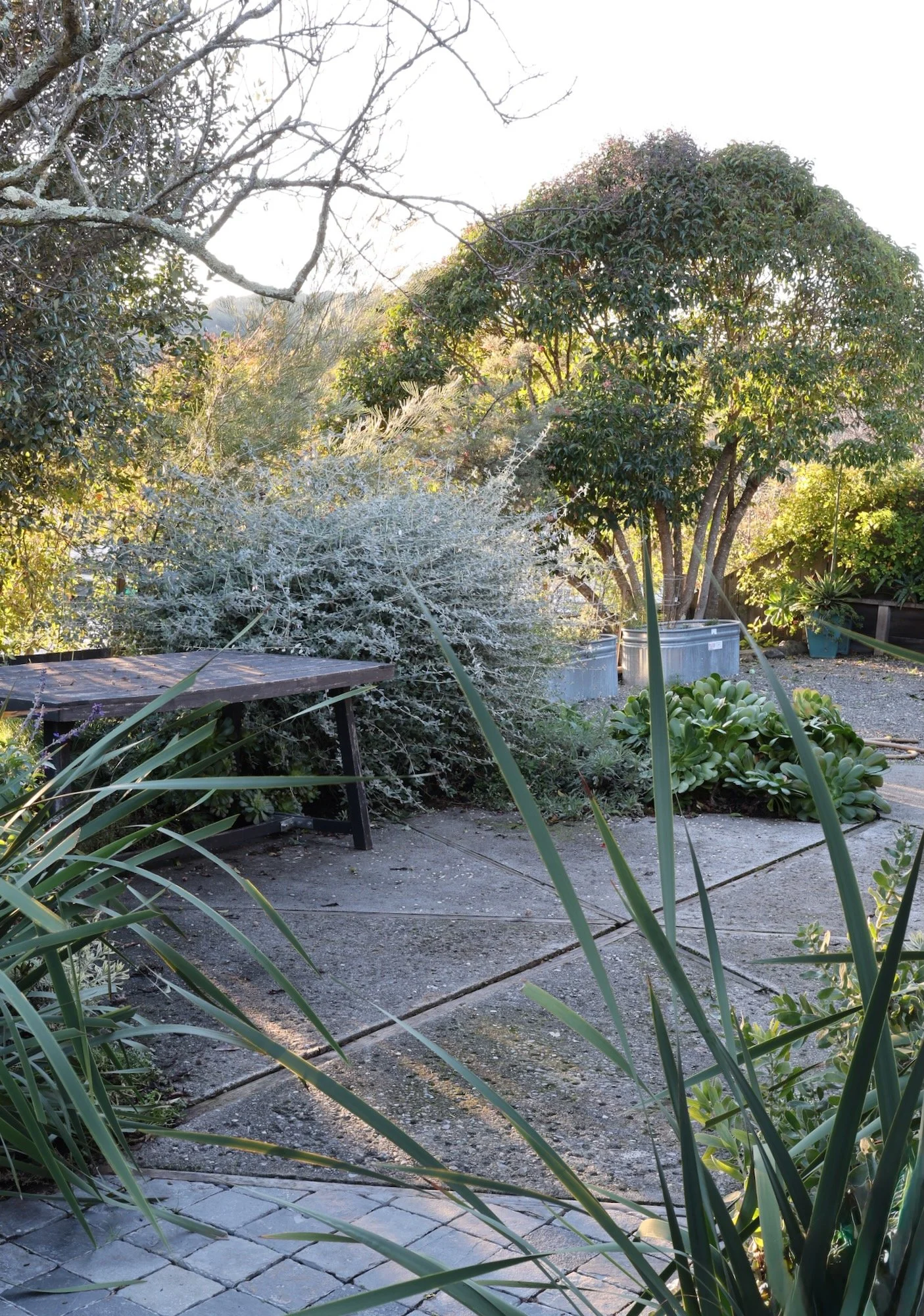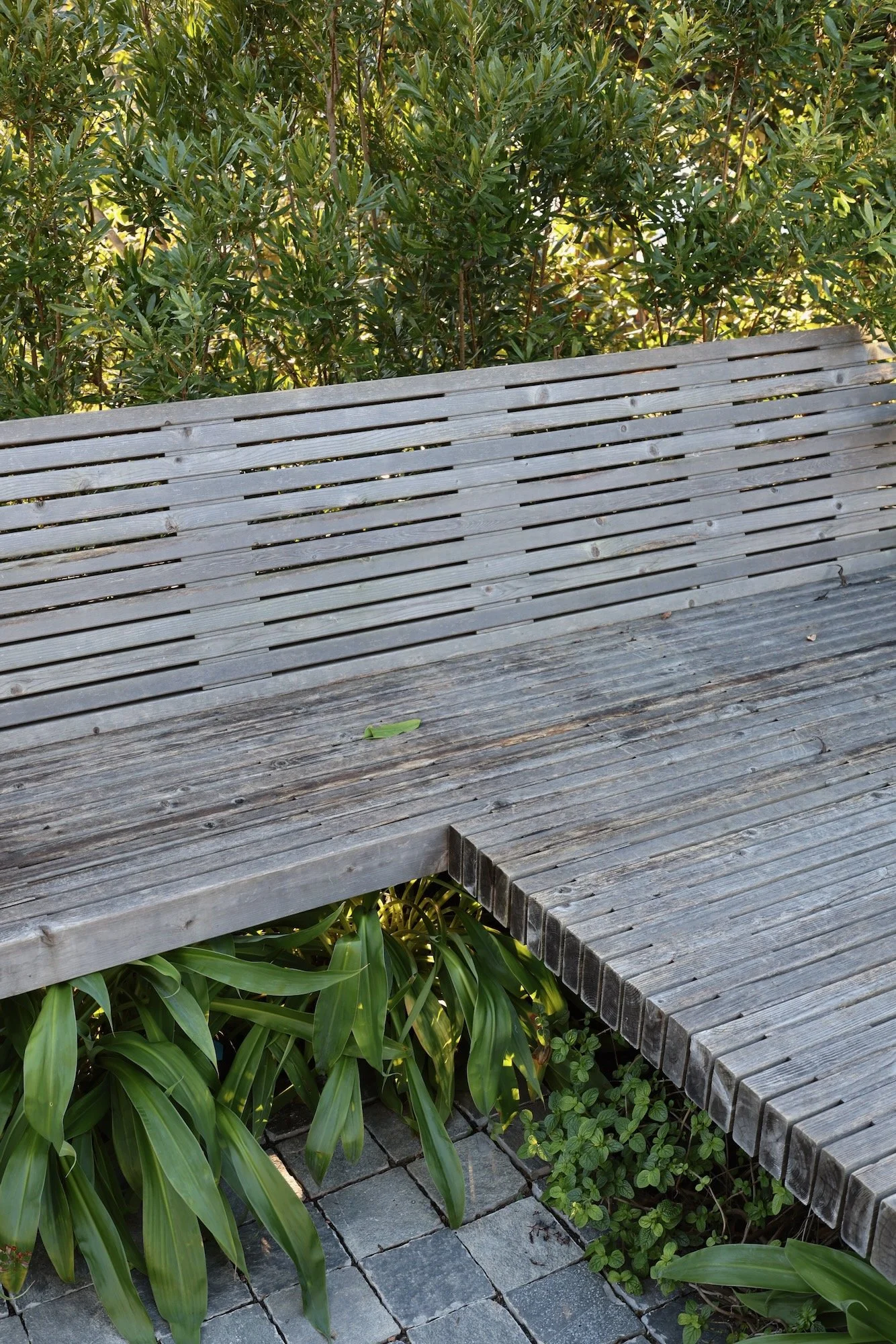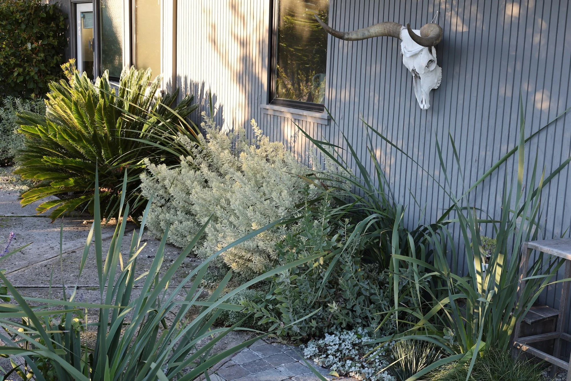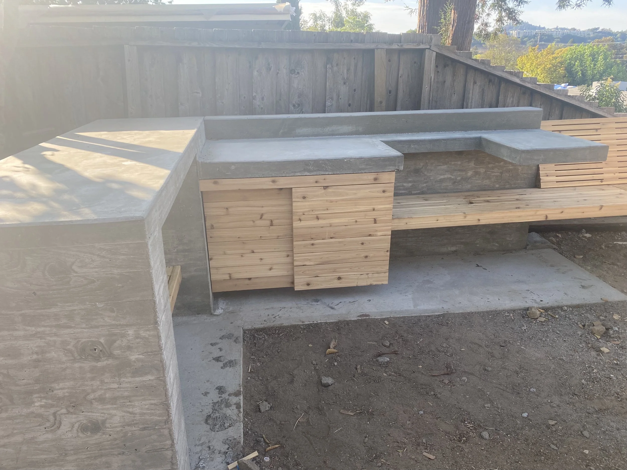 The bench / day bed / kitchen area is inspired by love island Australia - places for chat - that's what I was binge-ing when this project began during pandemic. Been working on parts of this landscape since our dear friends moved in. Really exciting for the pieces to start to connect. All the things happen in this back yard - major neighborhood parties / Girl Scout troop meet up realness / dogs / natural play for kids. The day bed transforms to a stage on karaoke nights.